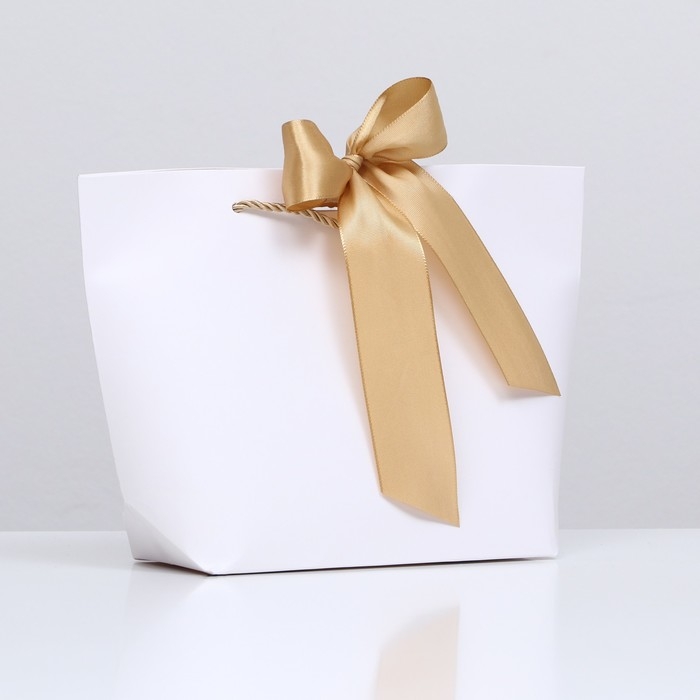 Пакет подарочный с лентой 19 х 20 х 9 см "Белый"