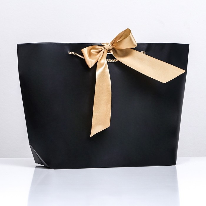 Пакет подарочный с лентой 26 х 25 х 11 см "Черный"