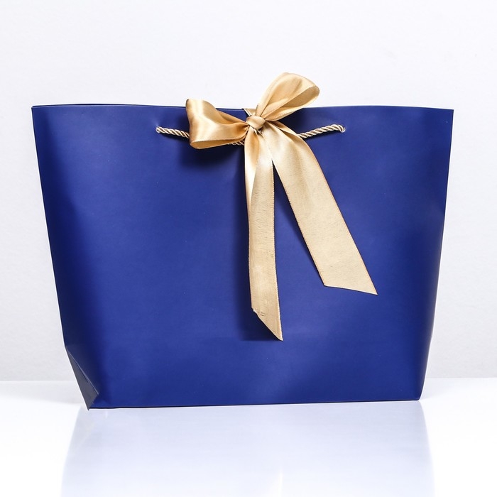 Пакет подарочный с лентой 26 х 25 х 11 см "Синий"