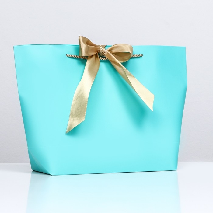 Пакет подарочный с лентой 26 х 25 х 11 см "Бирюзовый"