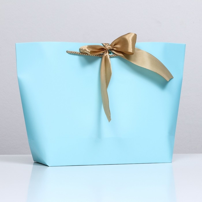 Пакет подарочный с лентой 26 х 25 х 11 см "Голубой"
