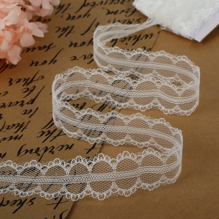 Кружево капроновое, 30 мм × 10 ± 1 м, цвет белый