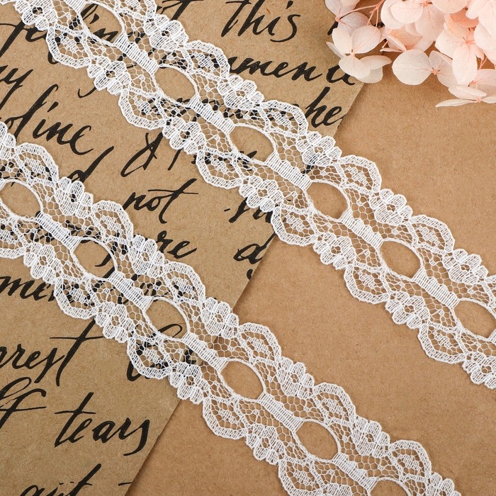 Кружево гипюровое, 35 мм × 9 ± 0,5 м, цвет белый