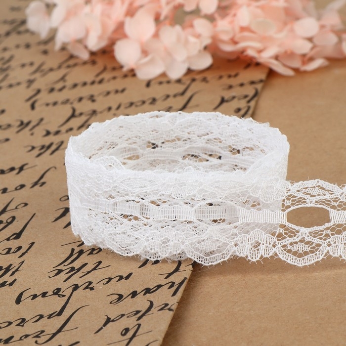 Кружево капроновое, 30 мм × 10 ± 1 м, цвет белый