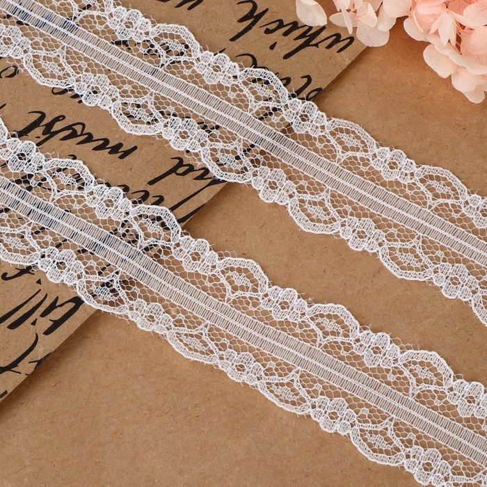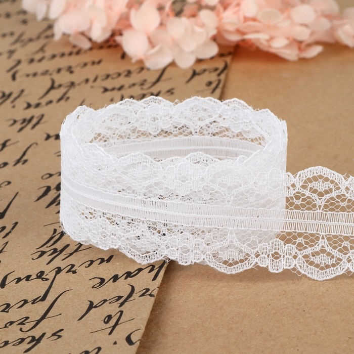 Кружево капроновое, 32 мм × 10 ± 1 м, цвет белый