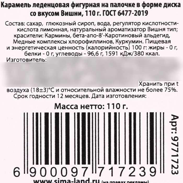 Леденец на палочке «Ой, всё», вкус: вишнёвый сок, 15 г.