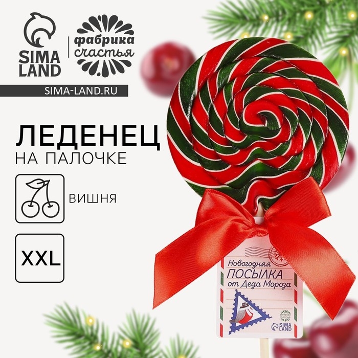 Леденец на палочке «Новогодняя посылка», вкус: вишня, 110 г.