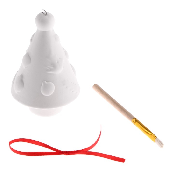 Новый год! Ёлочное украшение под раскраску «Елочка с гирляндой» с подвесом, кисть