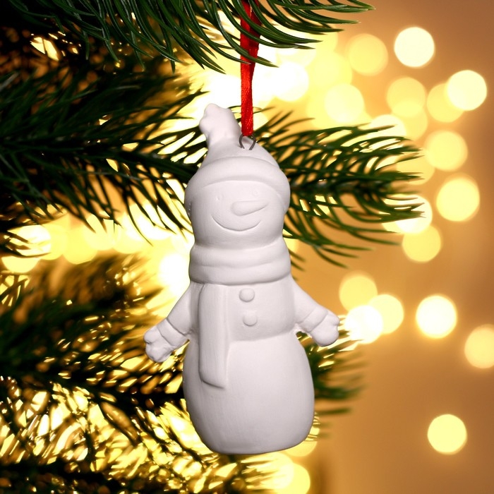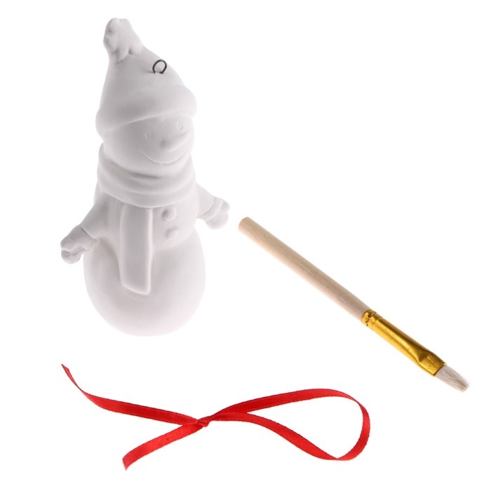 Новый год! Ёлочное украшение под раскраску «Снеговик» с подвесом, кисть
