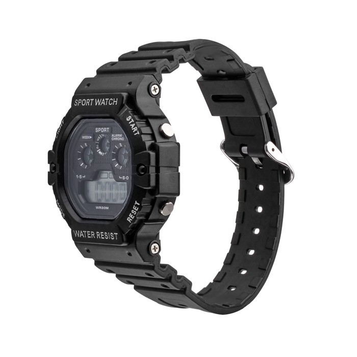 Часы наручные электронные, будильник, 3 АТМ, d-4.6 см, черные
