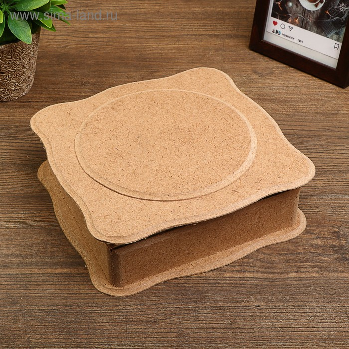 Шкатулка фигурная большая для декора из МДФ 18,5х18,5х6 см, накладка 14 см