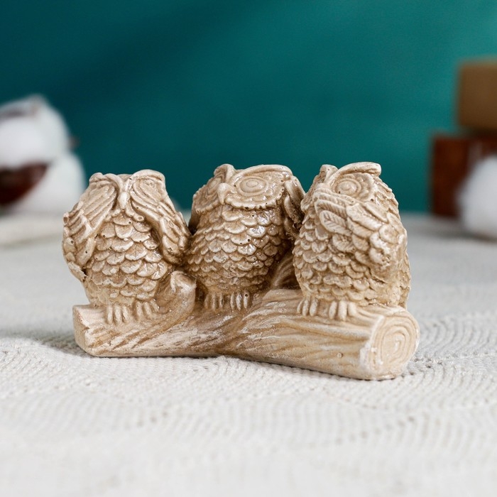 Фигура "Три совы на жердочке" коричневая, 10х6х5см
