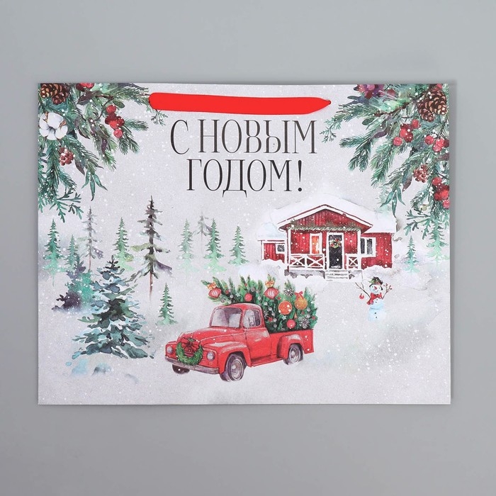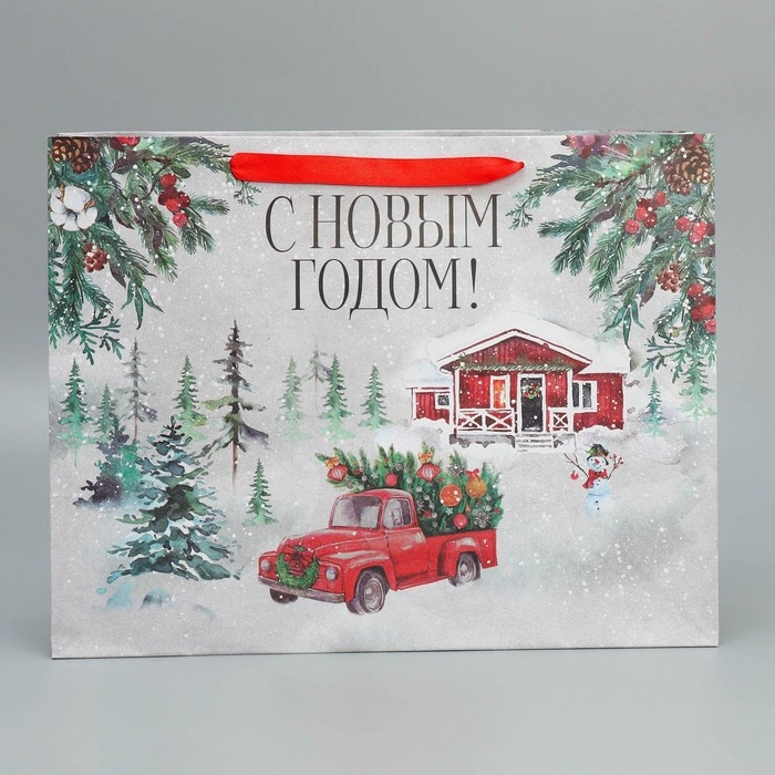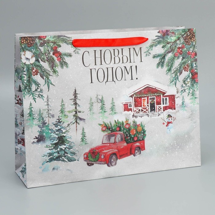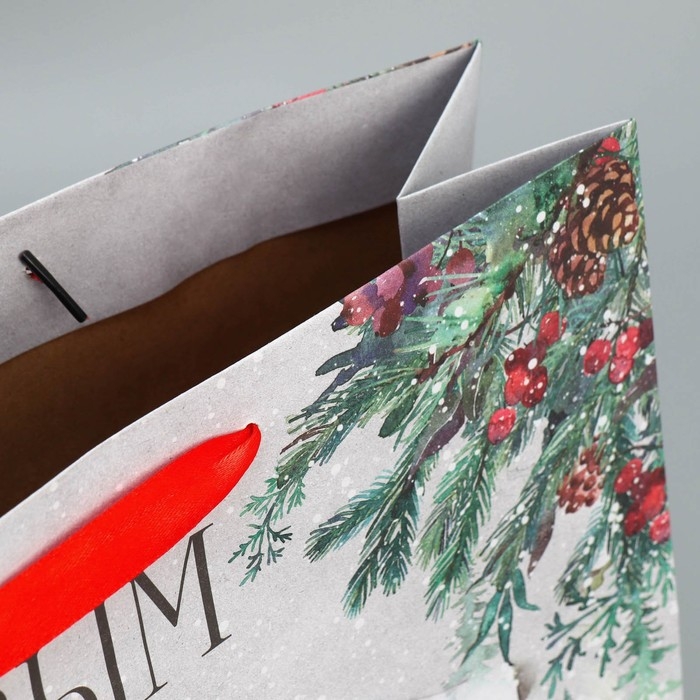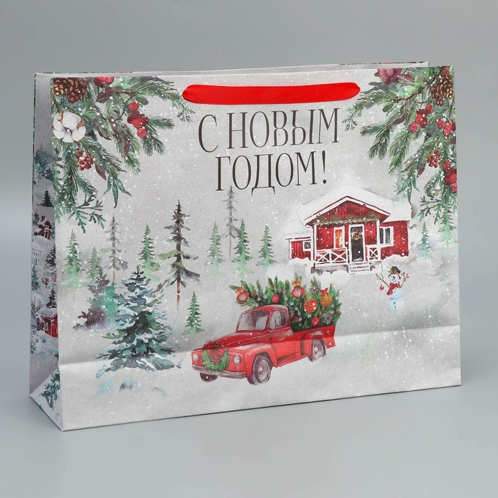 Пакет подарочный новогодний крафтовый горизонтальный «Новогодняя история», L 40 х 31 х 11.5 см, Новый год