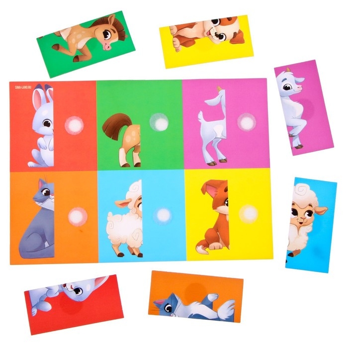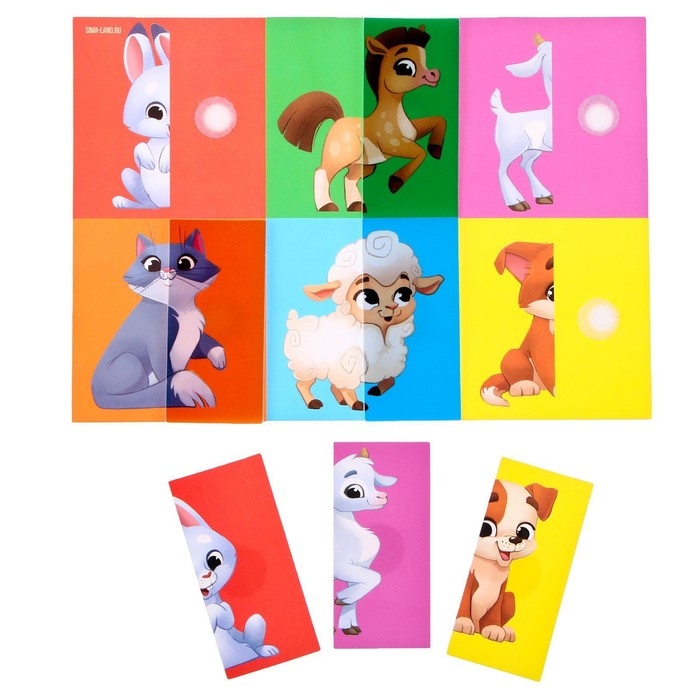 - Задача ребёнка — собрать картинку из двух половинок.