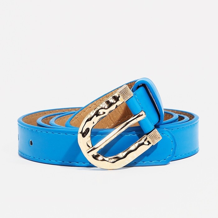 Ремень женский, ширина 2,2 см, винт, пряжка металл, цвет голубой