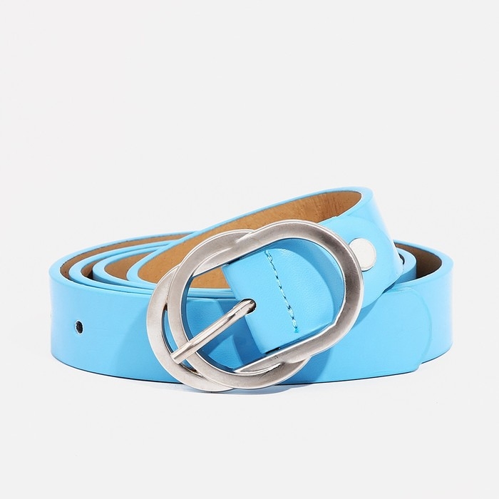 Ремень женский, ширина 2,4 см, винт, пряжка металл, цвет голубой