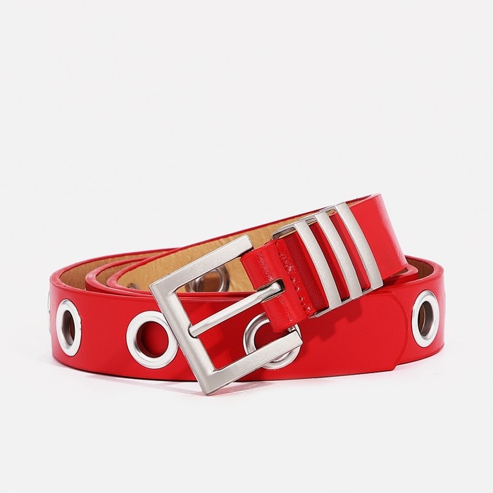 Ремень женский, ширина 2 см, пряжка металл, люверсы, цвет красный