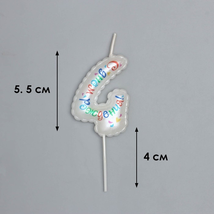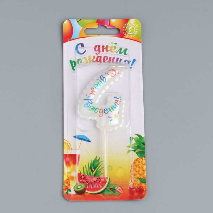 Свеча в торт на шпажке "Воздушная цифра.С Днем Рождения!", цифра 4