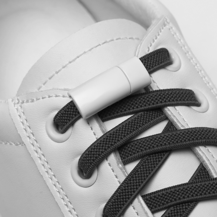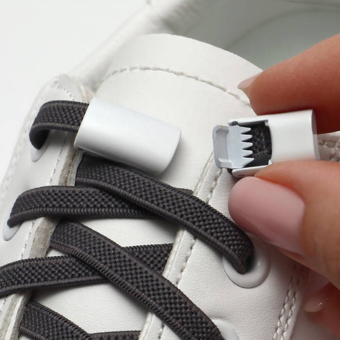 Шнурки для обуви, пара, плоские, с фиксатором, эластичные, 6 мм, 100 см, цвет белый