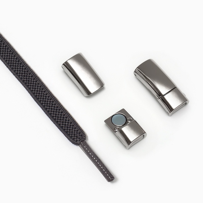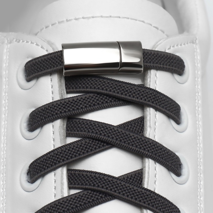 Шнурки для обуви, пара, с плоским сечением и фиксатором на магнитах, 100 см, цвет серый