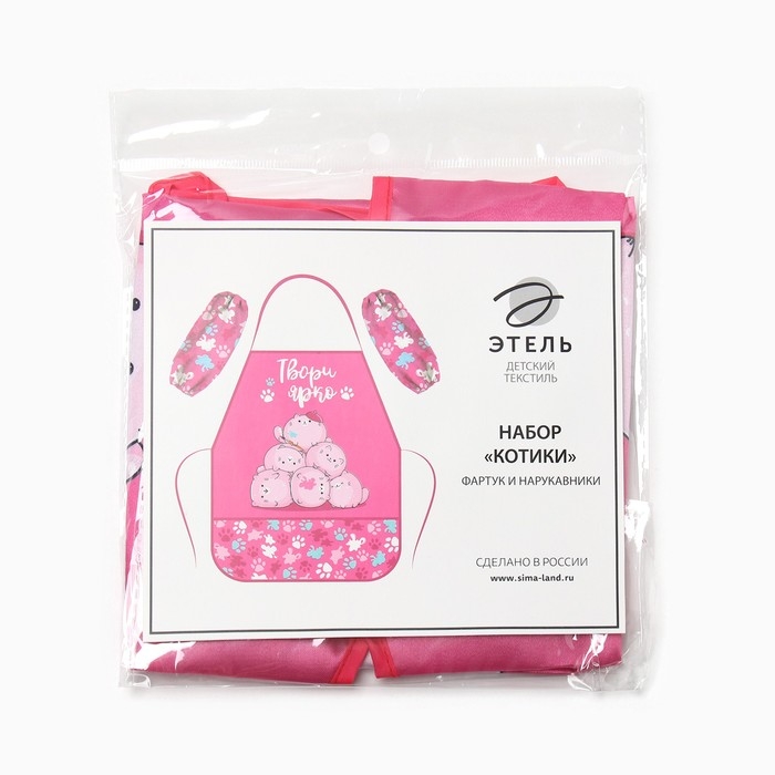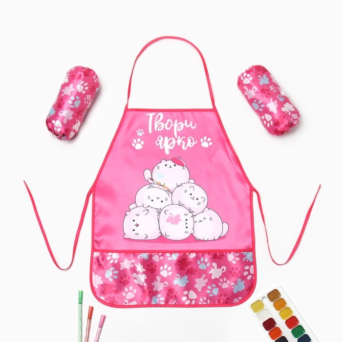 Набор детский для творчества Этель "Котики" фартук 49 х 39 см и нарукавники