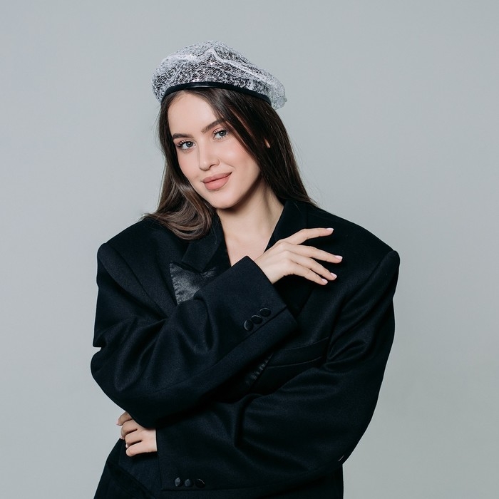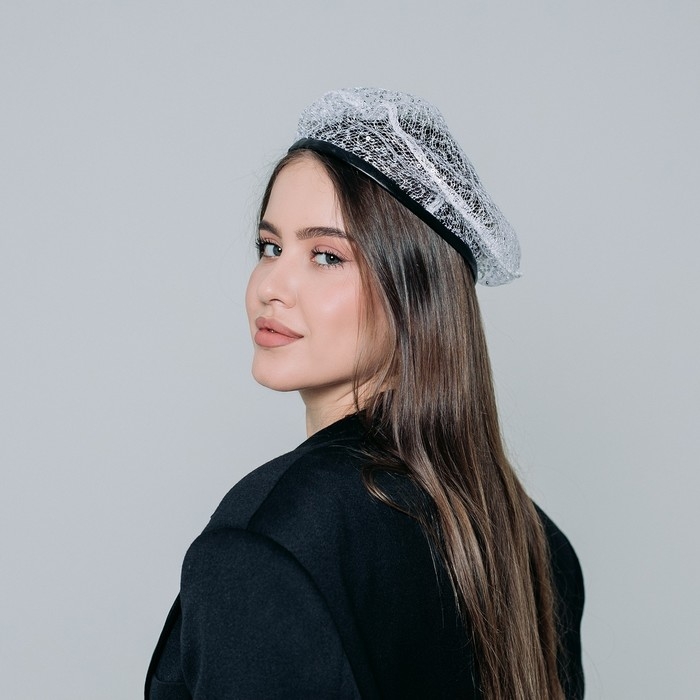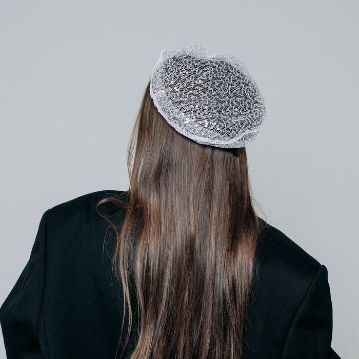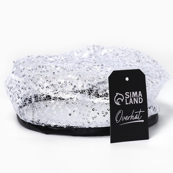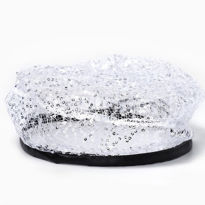 Берет прозрачный с пайетками, цвет белый, р-р 56см