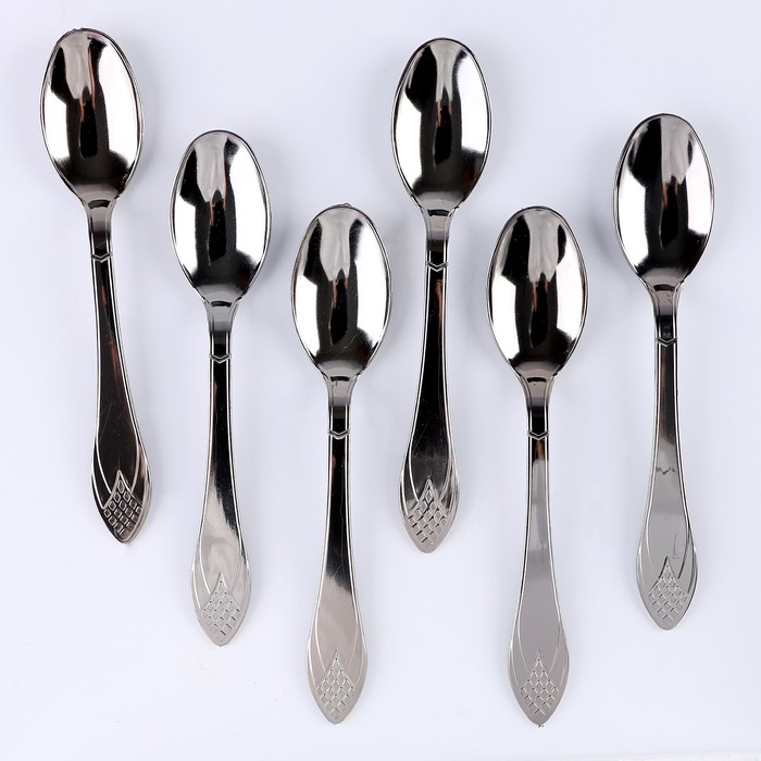 Ложки пластиковые, в наборе 6 шт., цвет серебро
