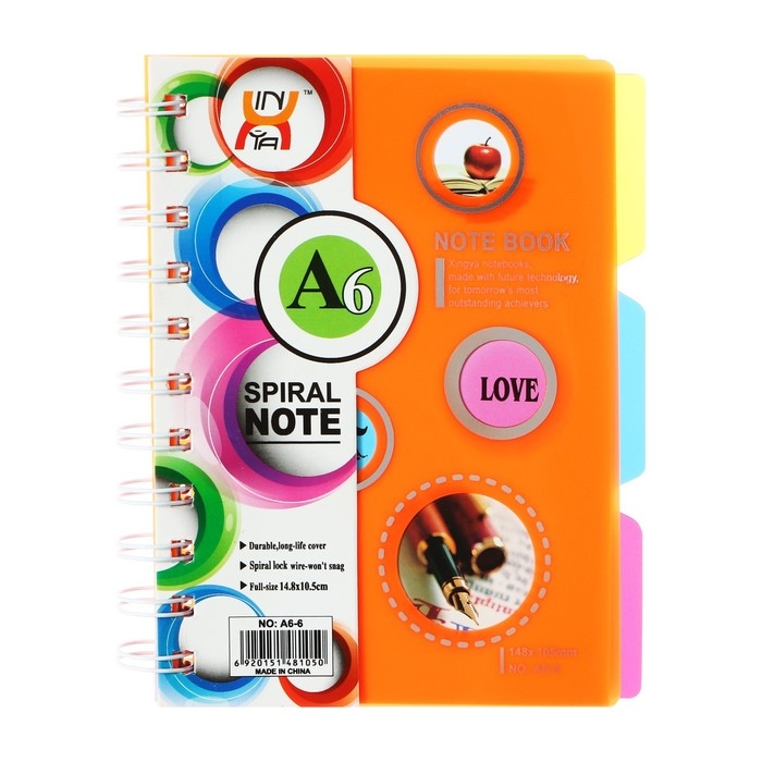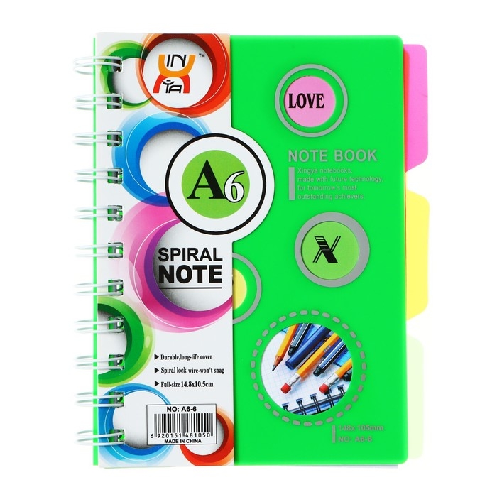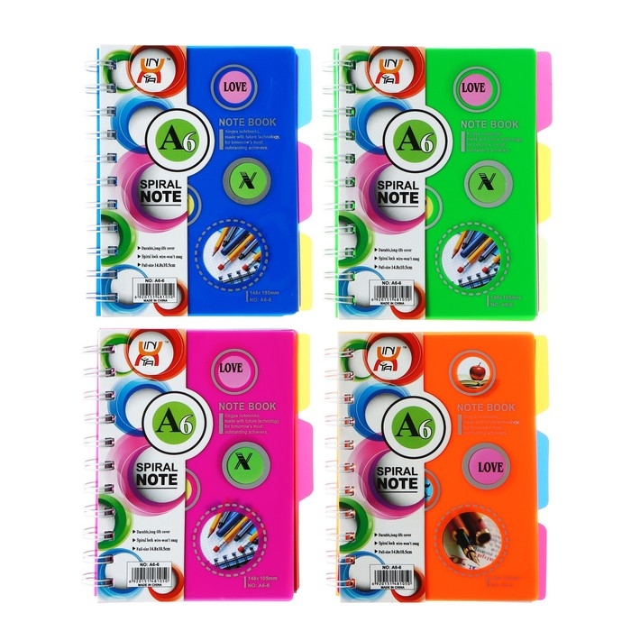 Блокнот на гребне А6, 100 листов, линия, обложка пластик, с разделителями, Ассорти МИКС