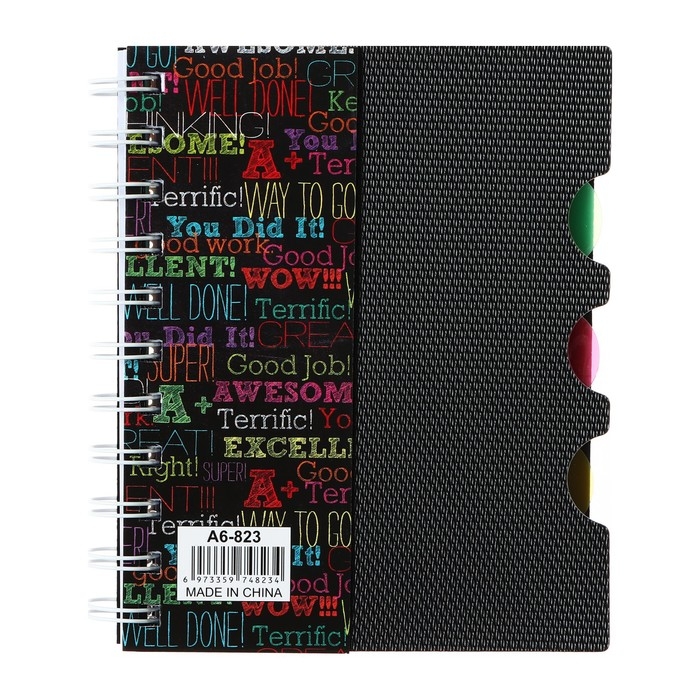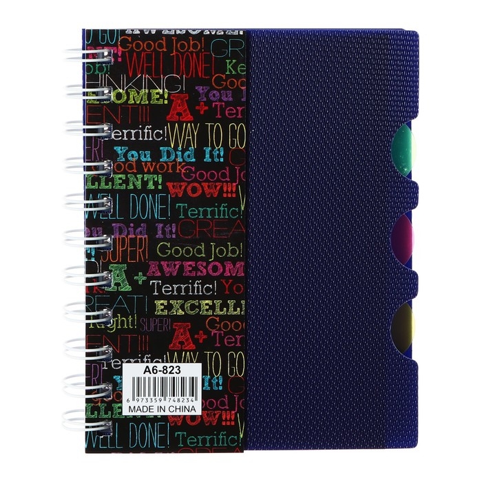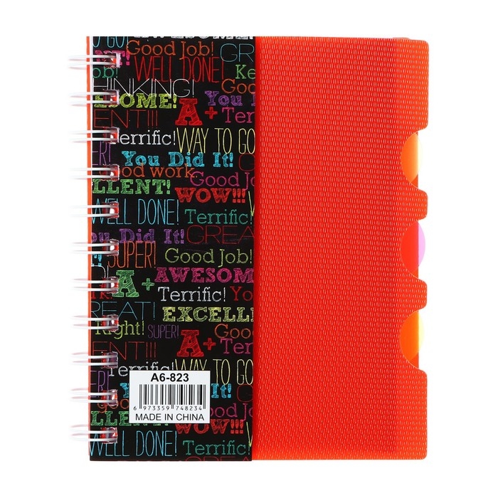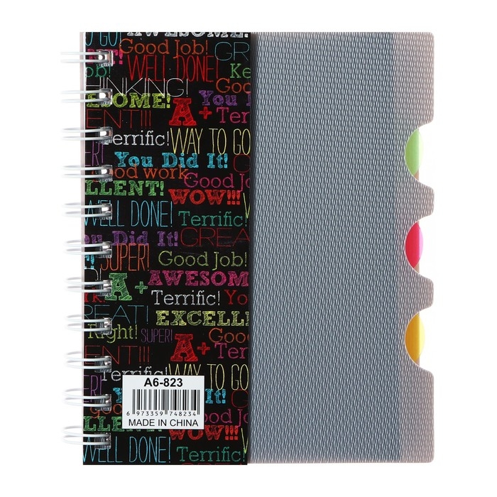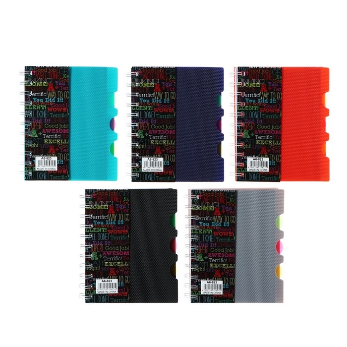 Блокнот на гребне А6, 100 листов, линия, обложка пластик, с разделителями "Граффити", МИКС