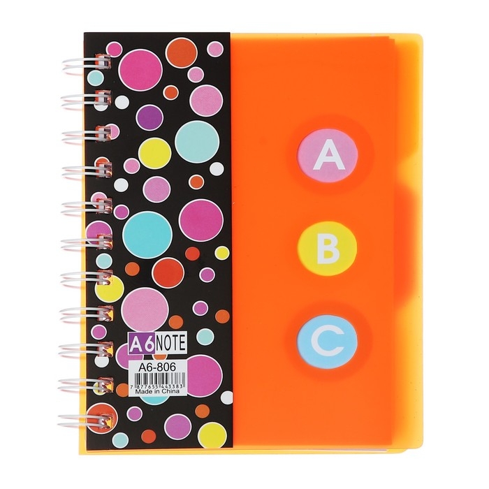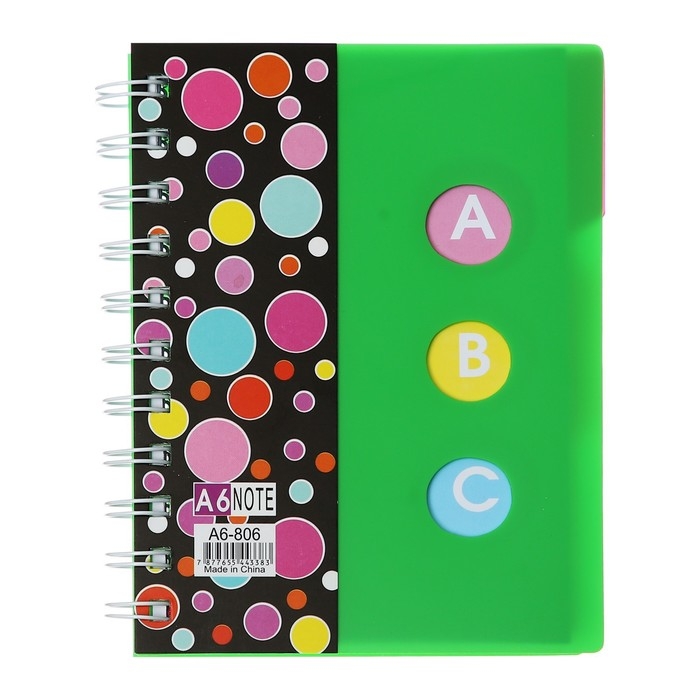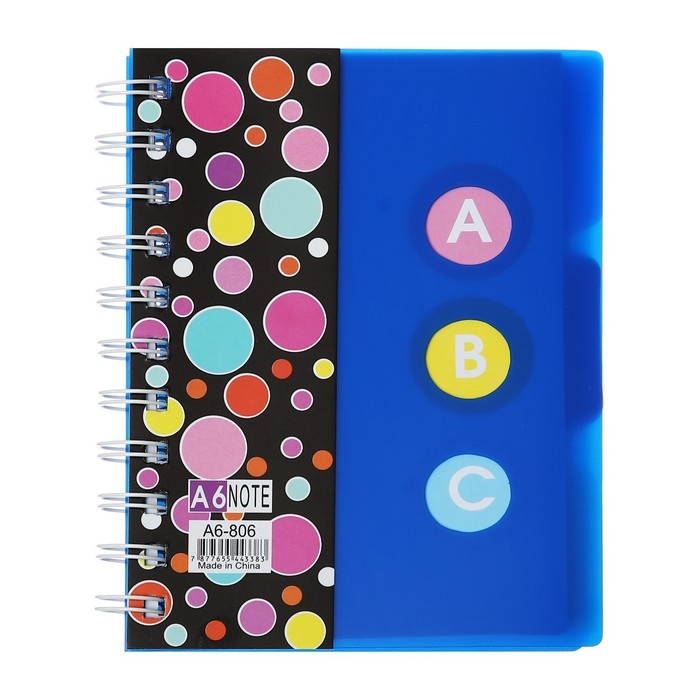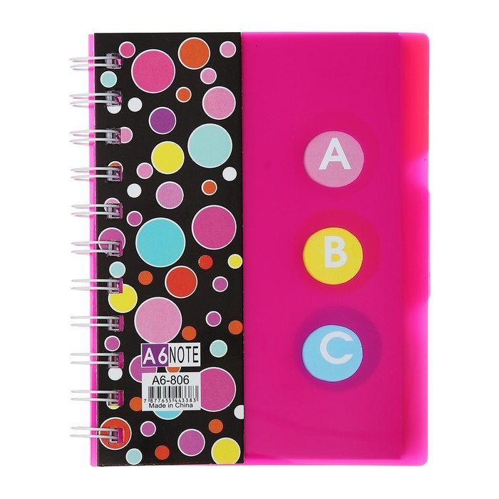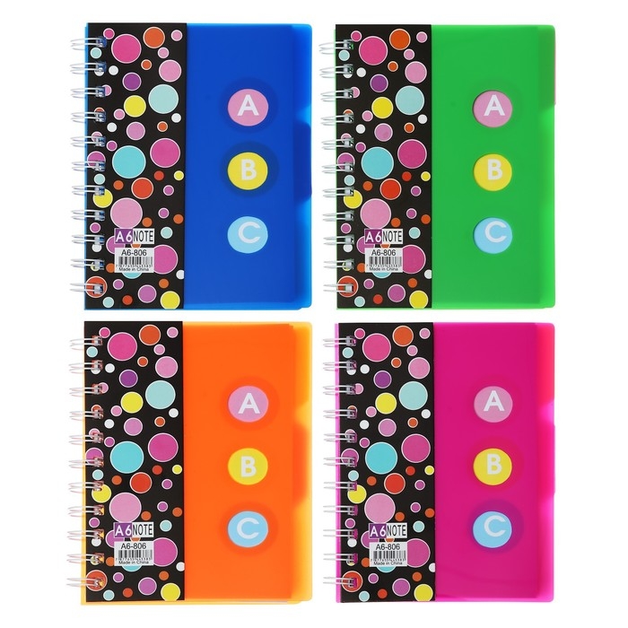 Блокнот на гребне А6, 100 листов, линия, обложка пластик, с разделителями "Стиль", МИКС