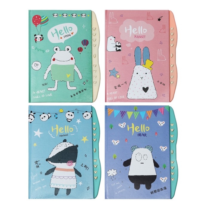 Записная книжка подарочная на замке, А6+, 48 листов, линия "Веселые животные", МИКС