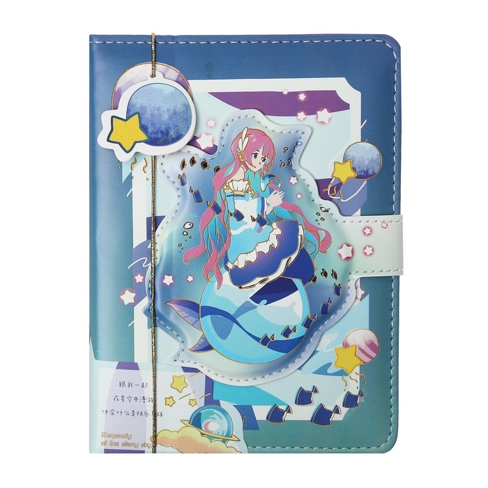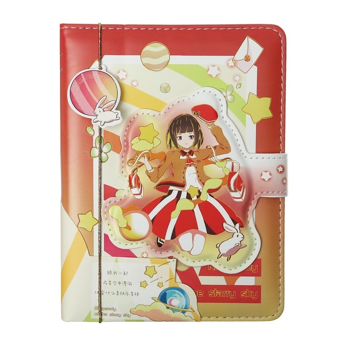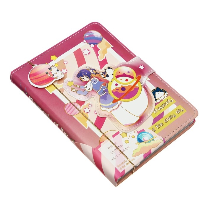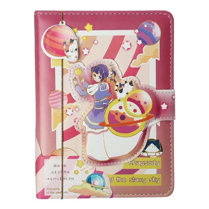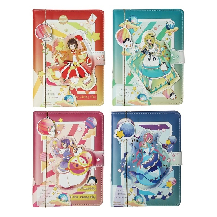 Записная книжка подарочная, А6, 96 листов, цветной блок, с фигурным хлястиком, обложка пвх, "Аниме", МИКС