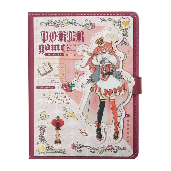 Записная книжка подарочная, А6, 112 листов, цветной блок, с фигурным хлястиком, обложка пвх, "Аниме", МИКС