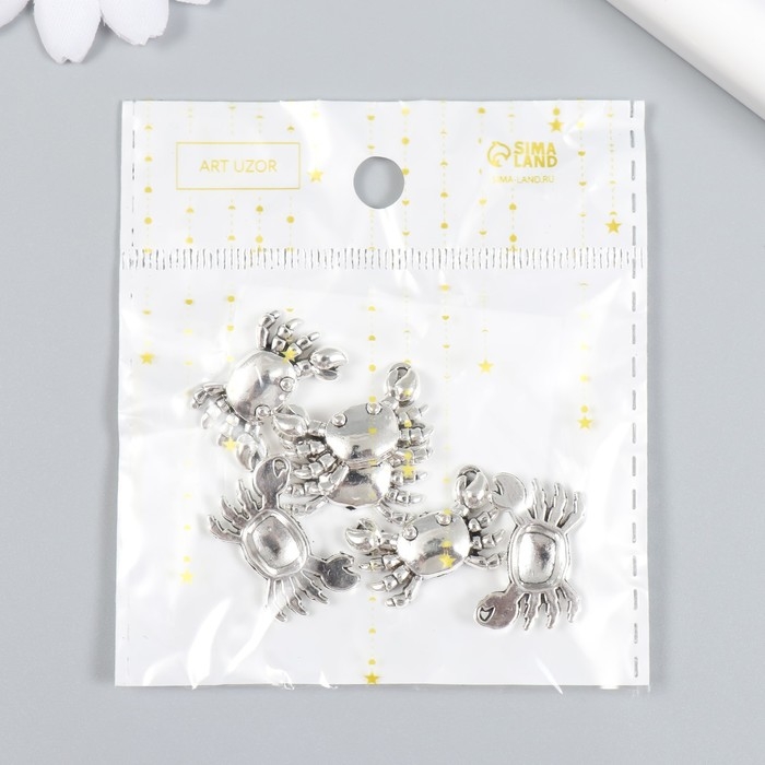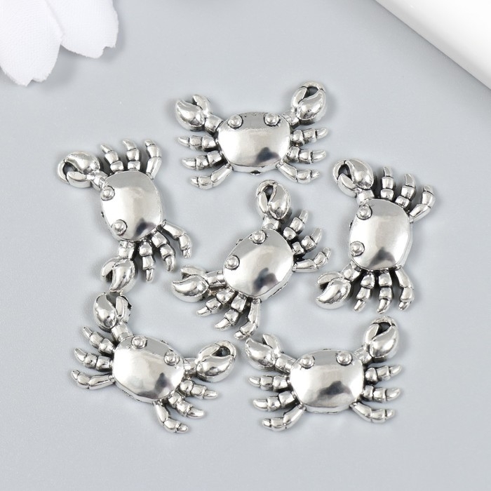 Декор для творчества металл "Крабик" набор 6 шт серебро 1,6х2,3 см