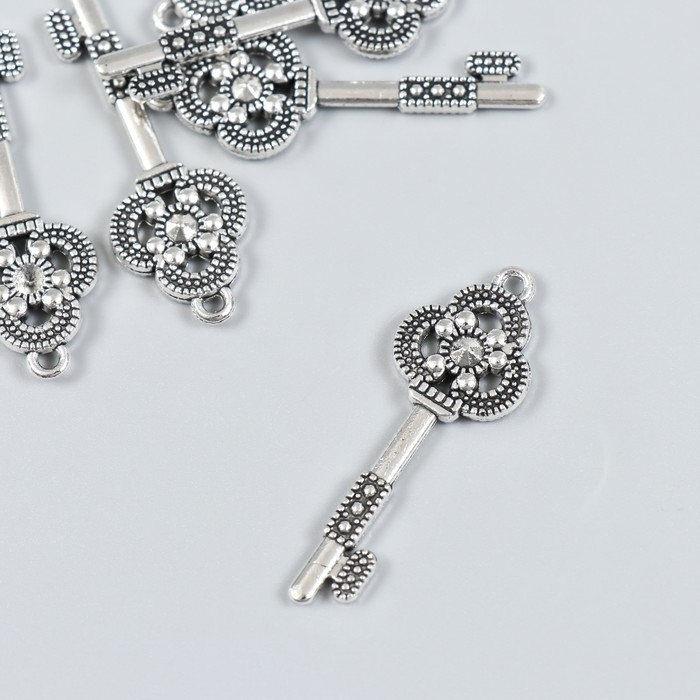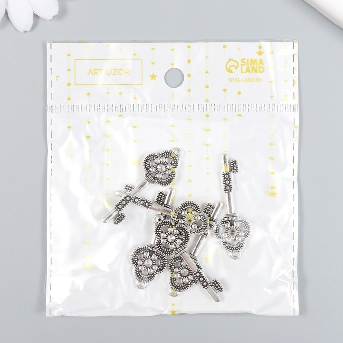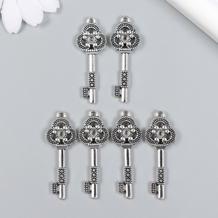 Декор для творчества металл "Ключик с трилистником" набор 6 шт серебро 1,5х4,2 см