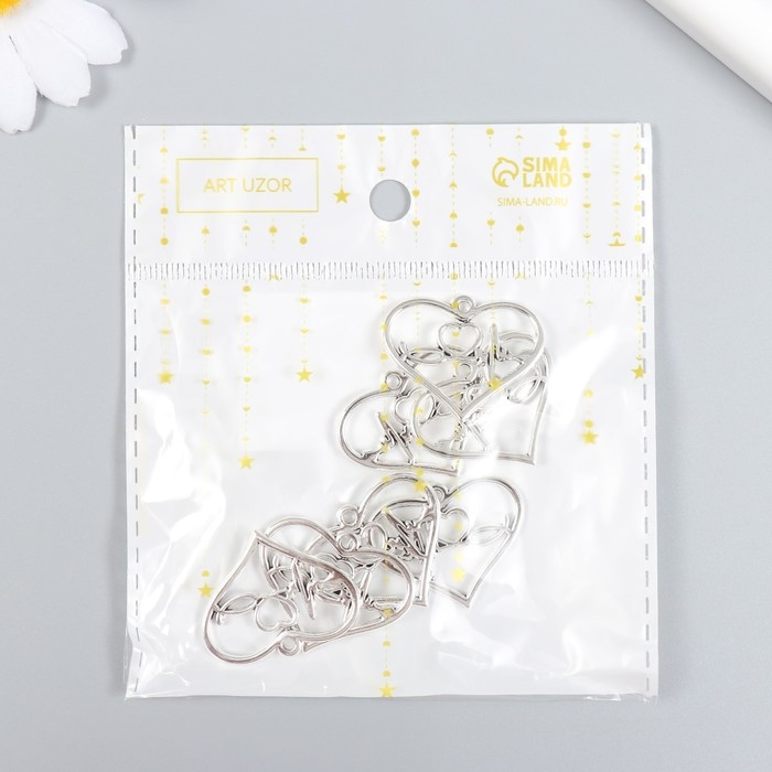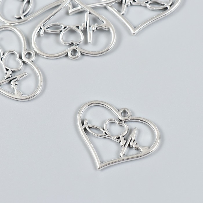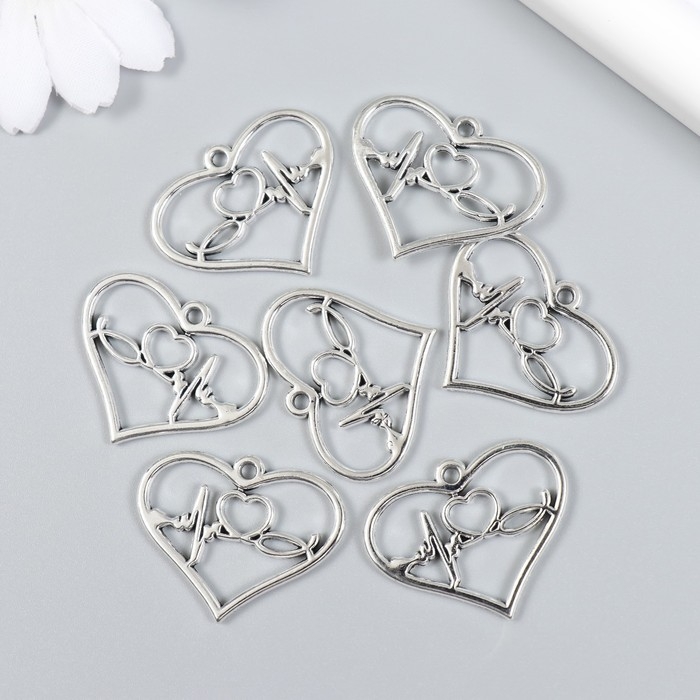 Декор для творчества металл "Сердечко с кардиограммой" набор 7 шт серебро 3х2,4 см