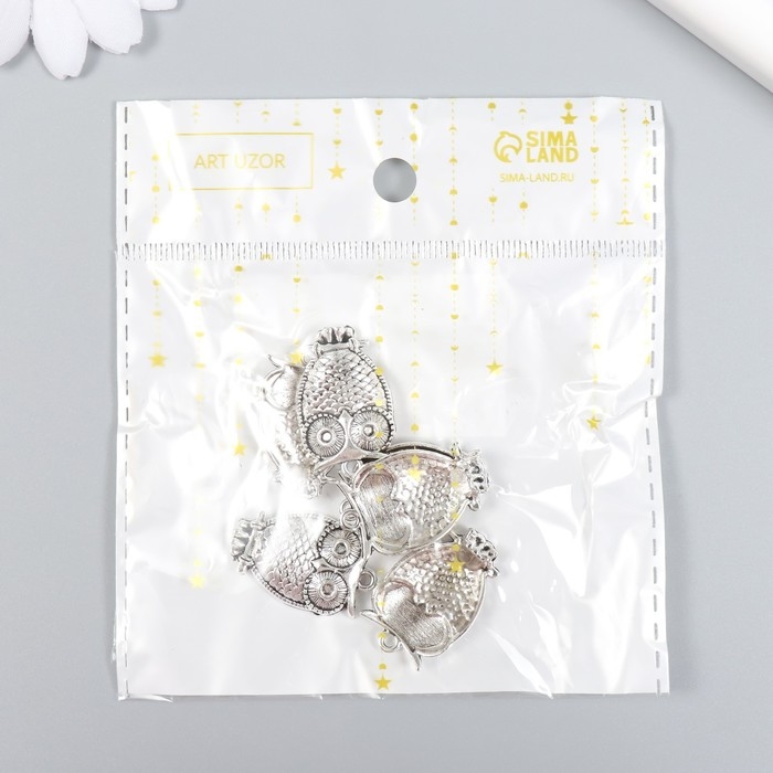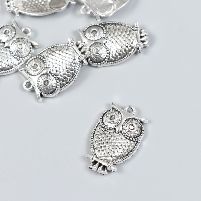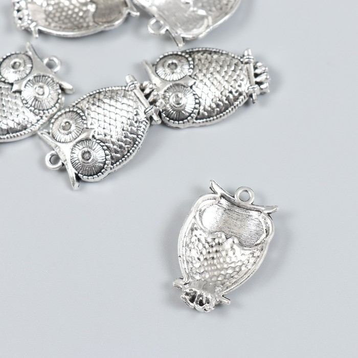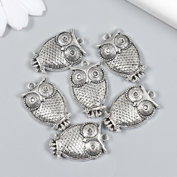Декор для творчества металл "Филин на ветке" набор 6 шт серебро 1,8х2,9 см