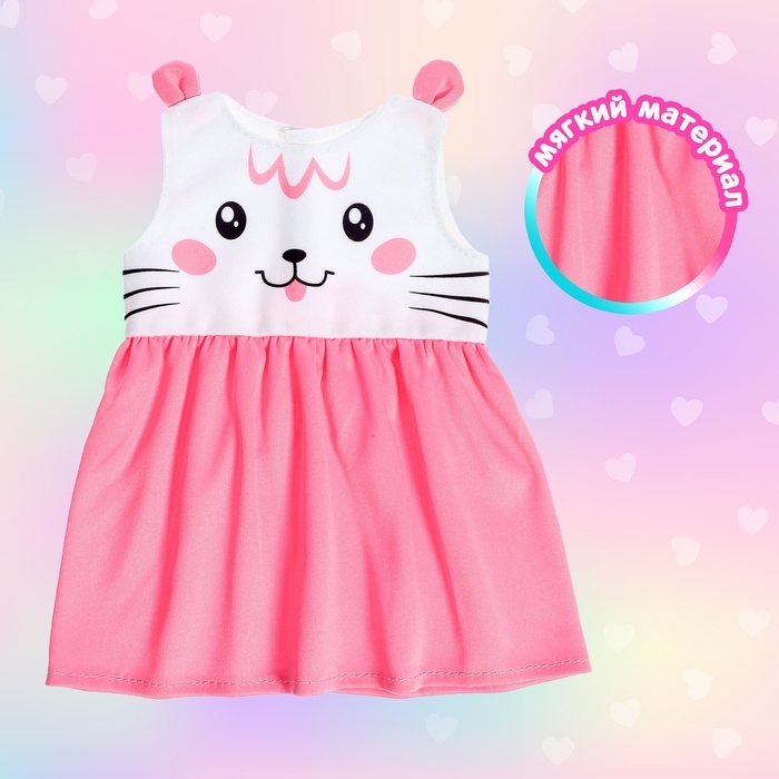 Одежда для пупса: платье розовое в цветочек, с бантиком