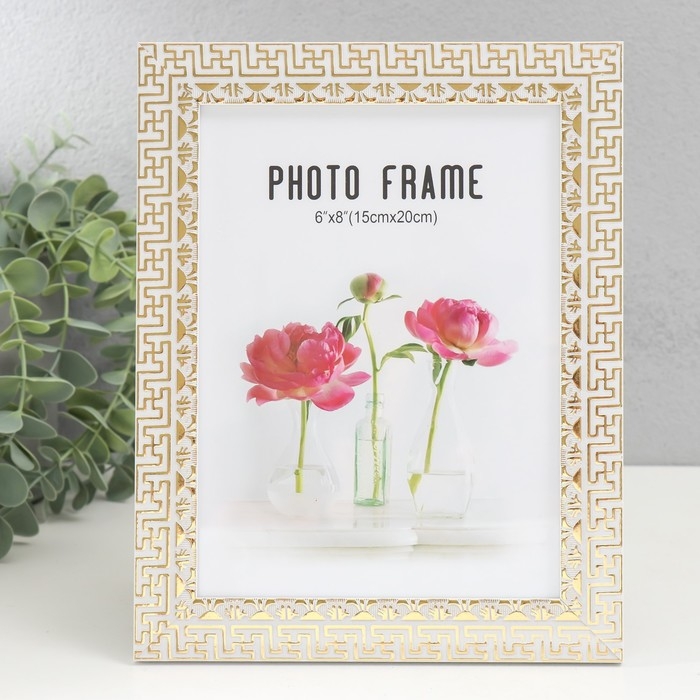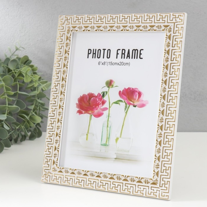 Фоторамка пластик 15х20 см "Греческие узоры" золото на белом 23,5х18,5 см