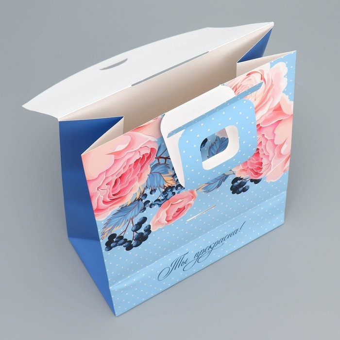 Пакет подарочный с формовым клапаном, упаковка, «Цветы», 23 х 27 х 11.5 см
