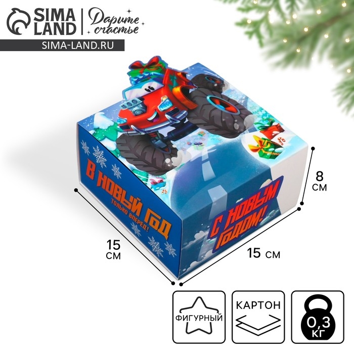 Подарочная коробка новогодняя складная «Только вперед», 15 х 15 х 8 см, Новый год