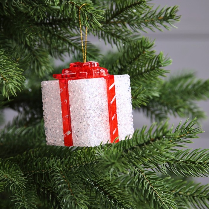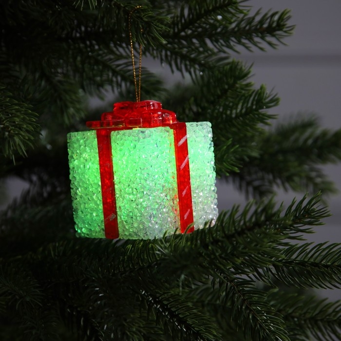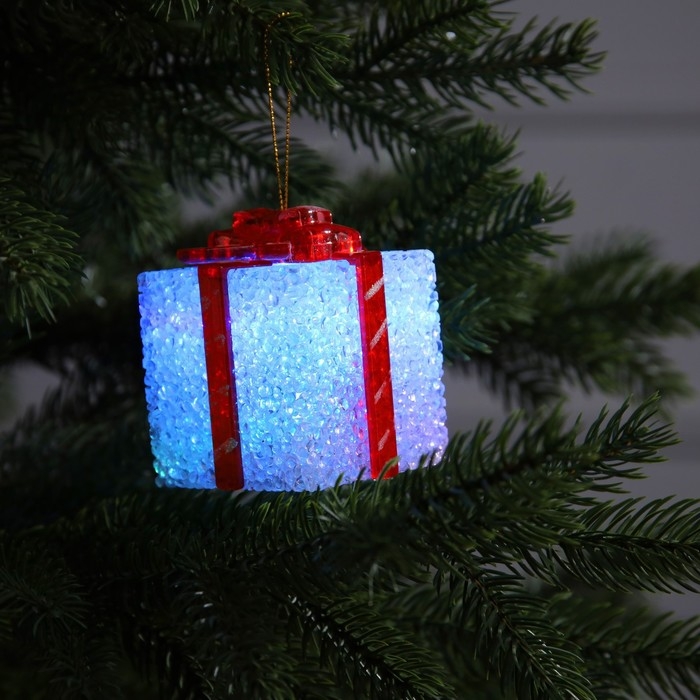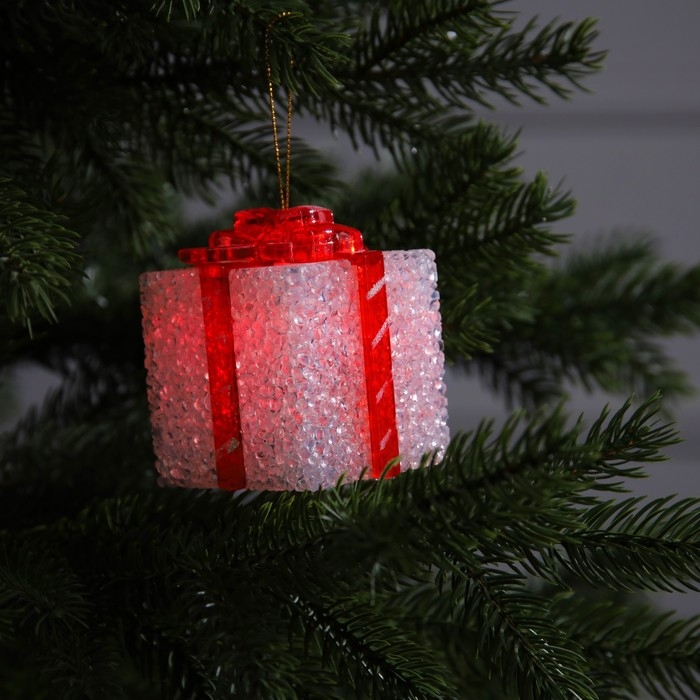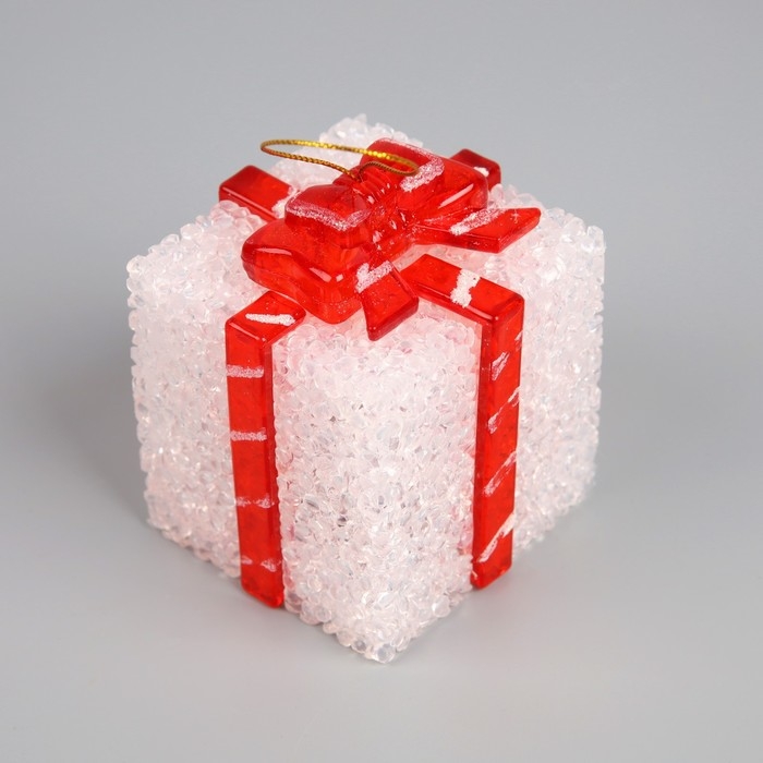 Светодиодная фигура «Подарок белый» 8 см, пластик, батарейки AG13х3 (в комплекте), свечение мульти (RGB)