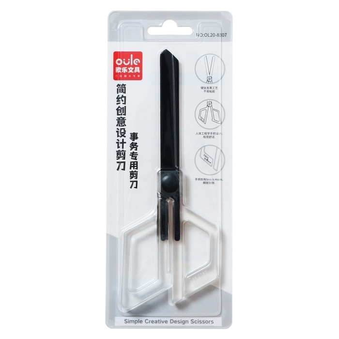 Ножницы канцелярские 17см, черное лезвие, ручки пластиковые, прозрачные