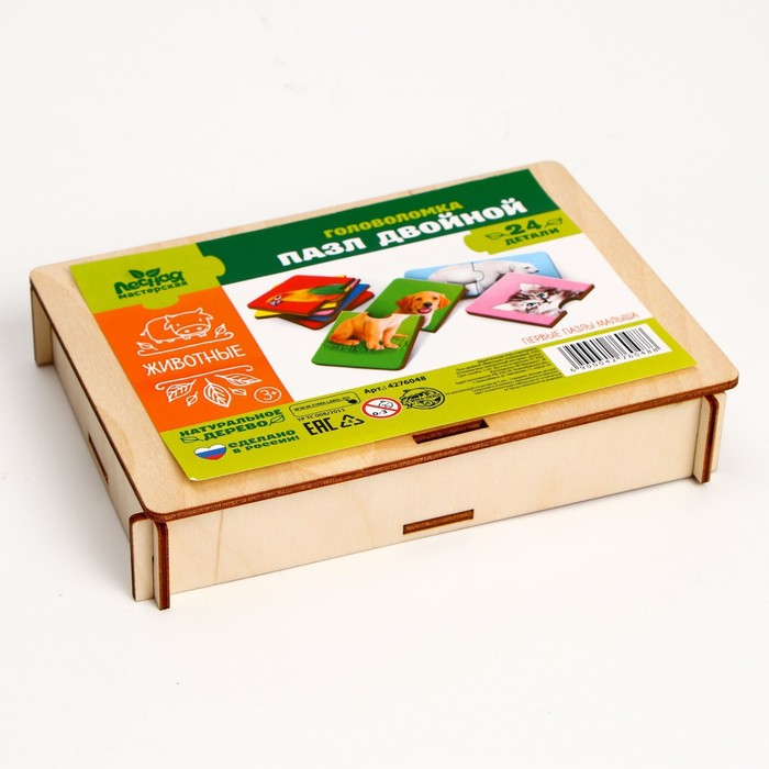 Пазл двойной «Животные» (головоломка), 12 пазлов, 24 детали
