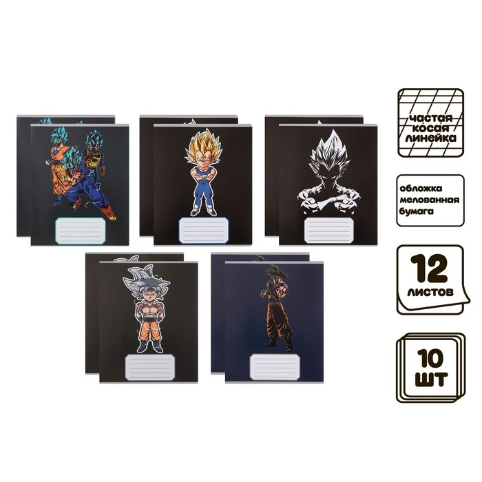 Комплект тетрадей из 10 штук, 12 листов в частую косую линию Calligrata "Супер М", обложка мелованная бумага, ВД-лак, блок офсет, 5 видов по 2 штуки