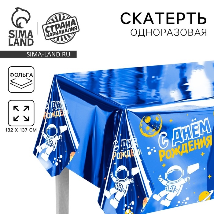 Скатерть одноразовая 182*137 "С днём рождения" космонавт, фольга