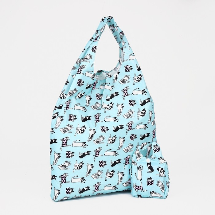 Сумка хозяйственная на кнопке, складная, цвет голубой