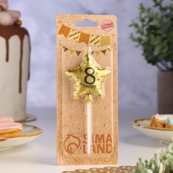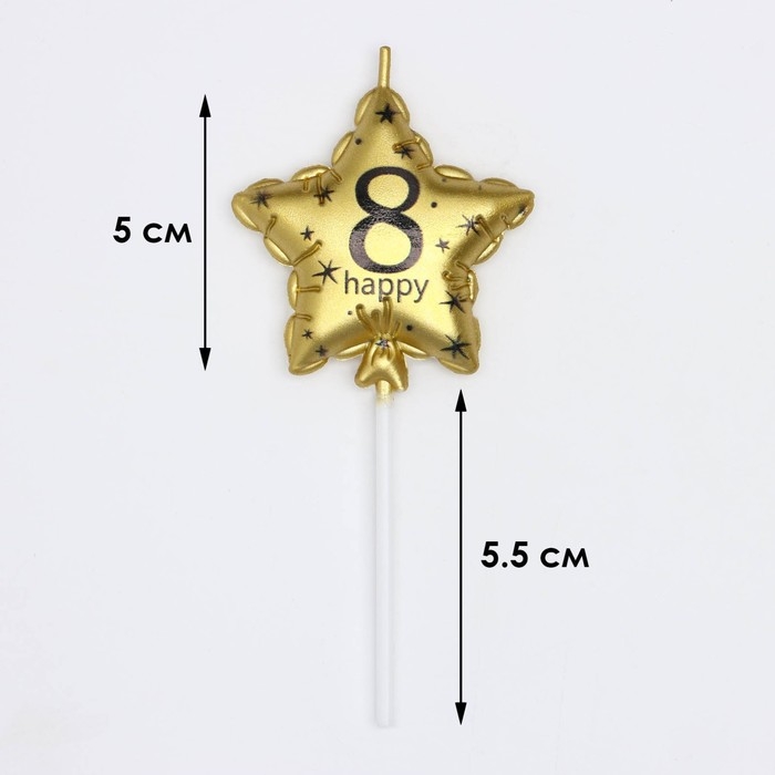 Свеча в торт на шпажке "Воздушный шарик.Звезда", цифра 8, 11х5 см, золотая