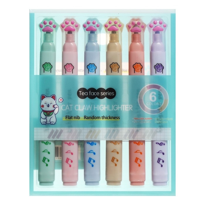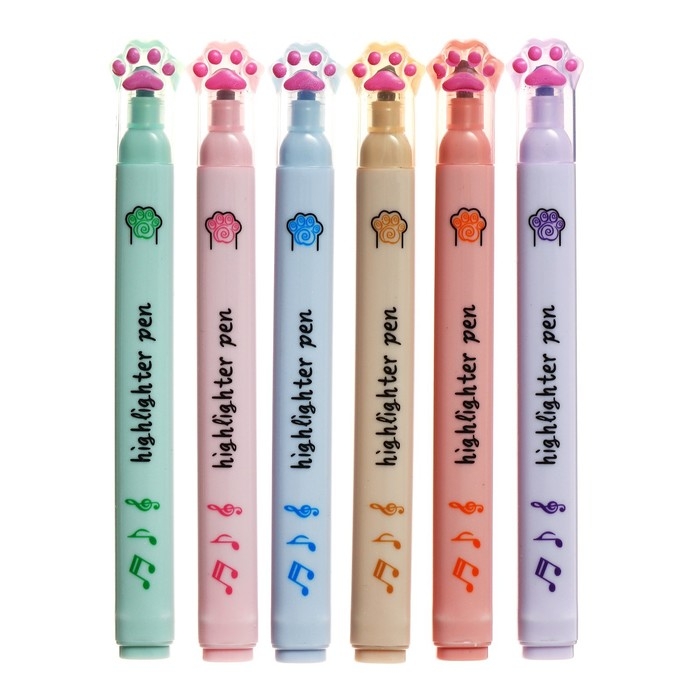 Набор маркеров-текстовыделителей 6 цветов, "Лапки с нотами"
