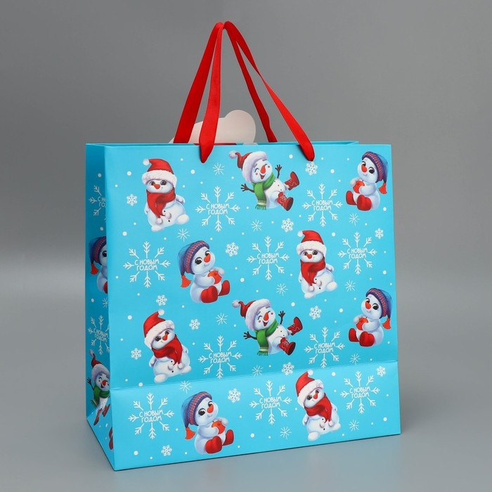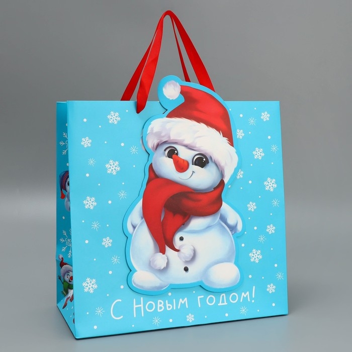 Пакет подарочный новогодний «Снеговик», 30 х 30 х 15 см, Новый год